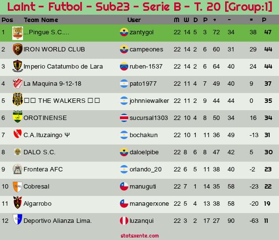 Widgets: LaInt - Futbol - Sub23 - Serie B - T. 20