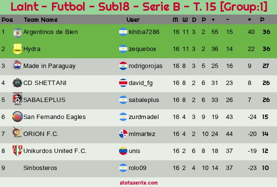 Widgets: LaInt - Futbol - Sub18 - Serie B - T. 15