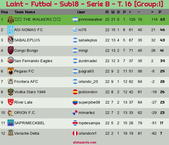 Widgets: LaInt - Futbol - Sub18 - Serie B - T. 16