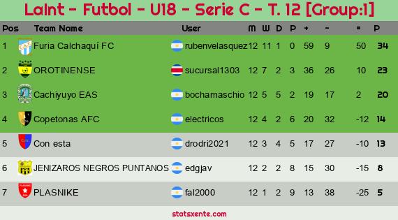 Widgets: LaInt - Futbol - U18 - Serie C - T. 12