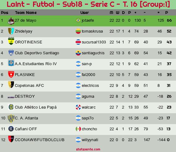 Widgets: LaInt - Futbol - Sub18 - Serie C - T. 16