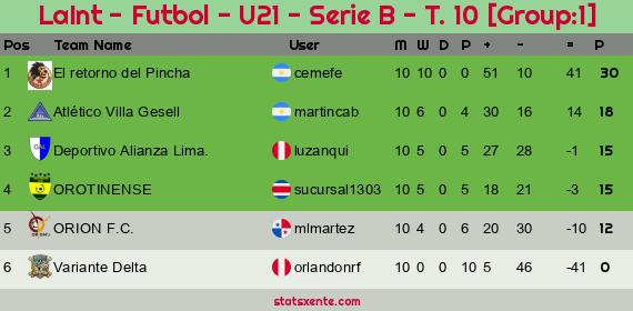 Widgets: LaInt - Futbol - U21 - Serie B - T. 10