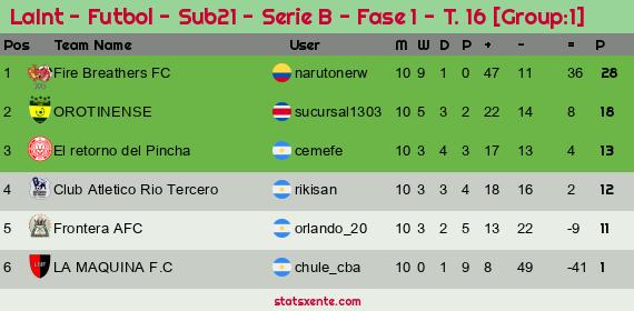 Widgets: LaInt - Futbol - Sub21 - Serie B - Fase 1 - T. 16