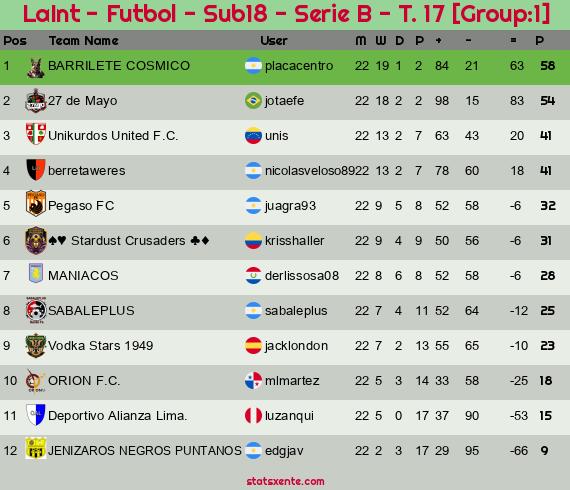 Widgets: LaInt - Futbol - Sub18 - Serie B - T. 17