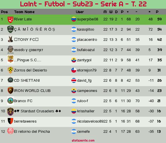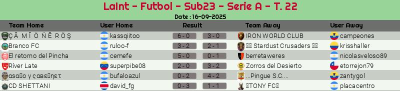 Widgets: LaInt - Futbol - Sub23 - Serie A - T. 22