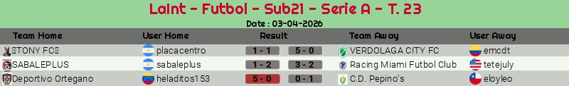 Widgets: LaInt - Futbol - Sub21 - Serie A - T. 23
