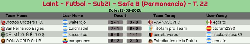 Widgets: LaInt - Futbol - Sub21 - Serie B (Permanencia) - T. 22