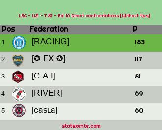 Direct confrontations [Without ties] |