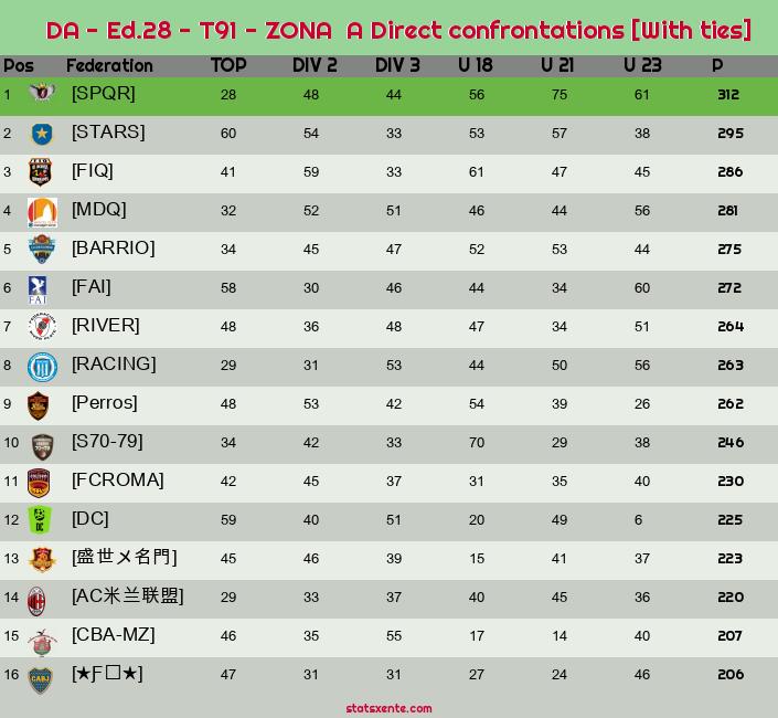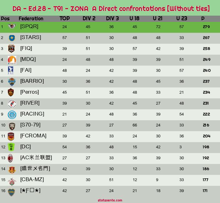 Direct confrontations [With ties] |