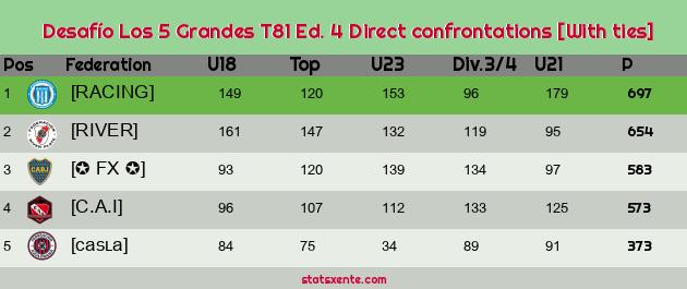 Direct confrontations [With ties] |