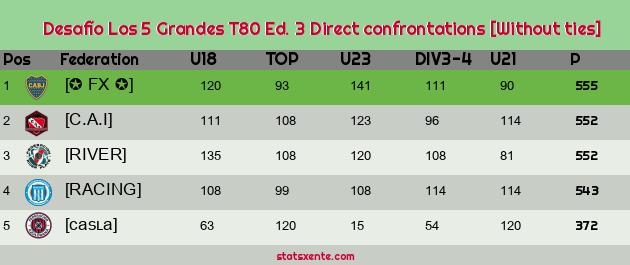 Direct confrontations [Without ties] |