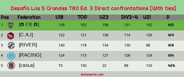 Direct confrontations [With ties] |