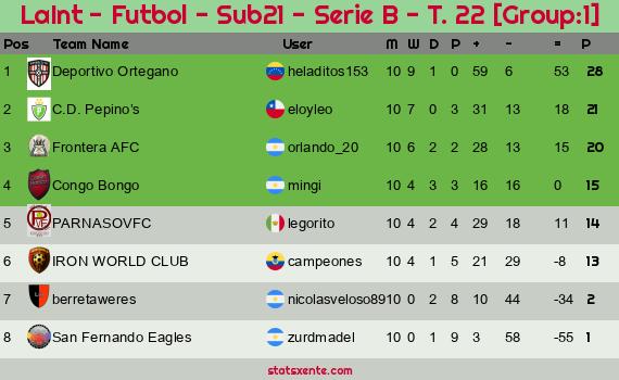 Widgets: LaInt - Futbol - Sub21 - Serie B - T. 22