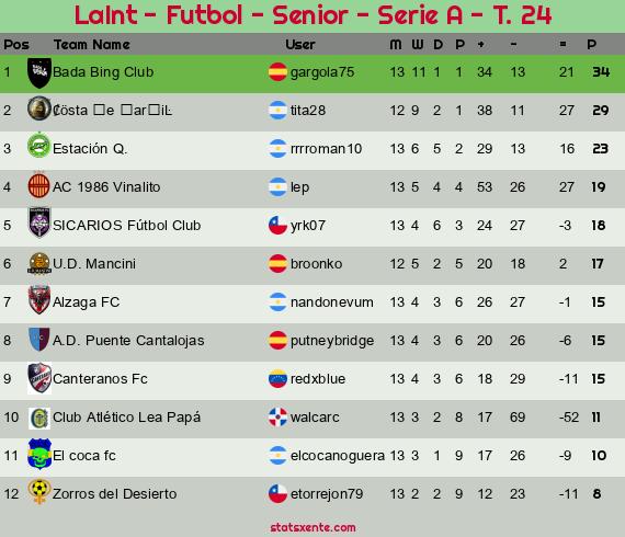 Widgets: LaInt - Futbol - Senior - Serie A - T. 24