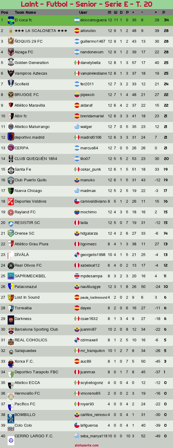 Widgets: LaInt - Futbol - Senior - Serie E - T. 20