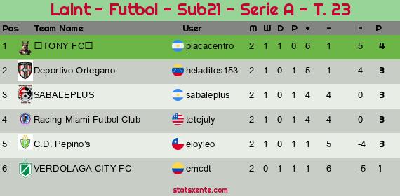 Widgets: LaInt - Futbol - Sub21 - Serie A - T. 23