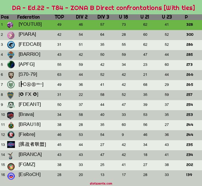 Direct confrontations [With ties] |