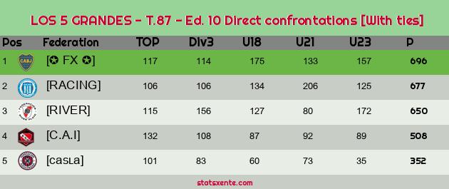 Direct confrontations [With ties] |